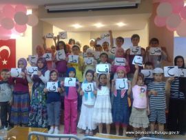 Ardından Kur’an Kursu Öğreticisi Dilek Çimen duygu ve düşüncelerini dile getirerek başarılı bir dönem geçireceklerine inandığını söyledi. Programın ilerleyen bölümlerinde yaz kursuna gelen çocuklar 29 harfin tanıtımını yaptılar. 29 öğrencinin ellerinde bir harf ile sahneye çıkması ve harfleri tanıtması ilgi ile izlendi.